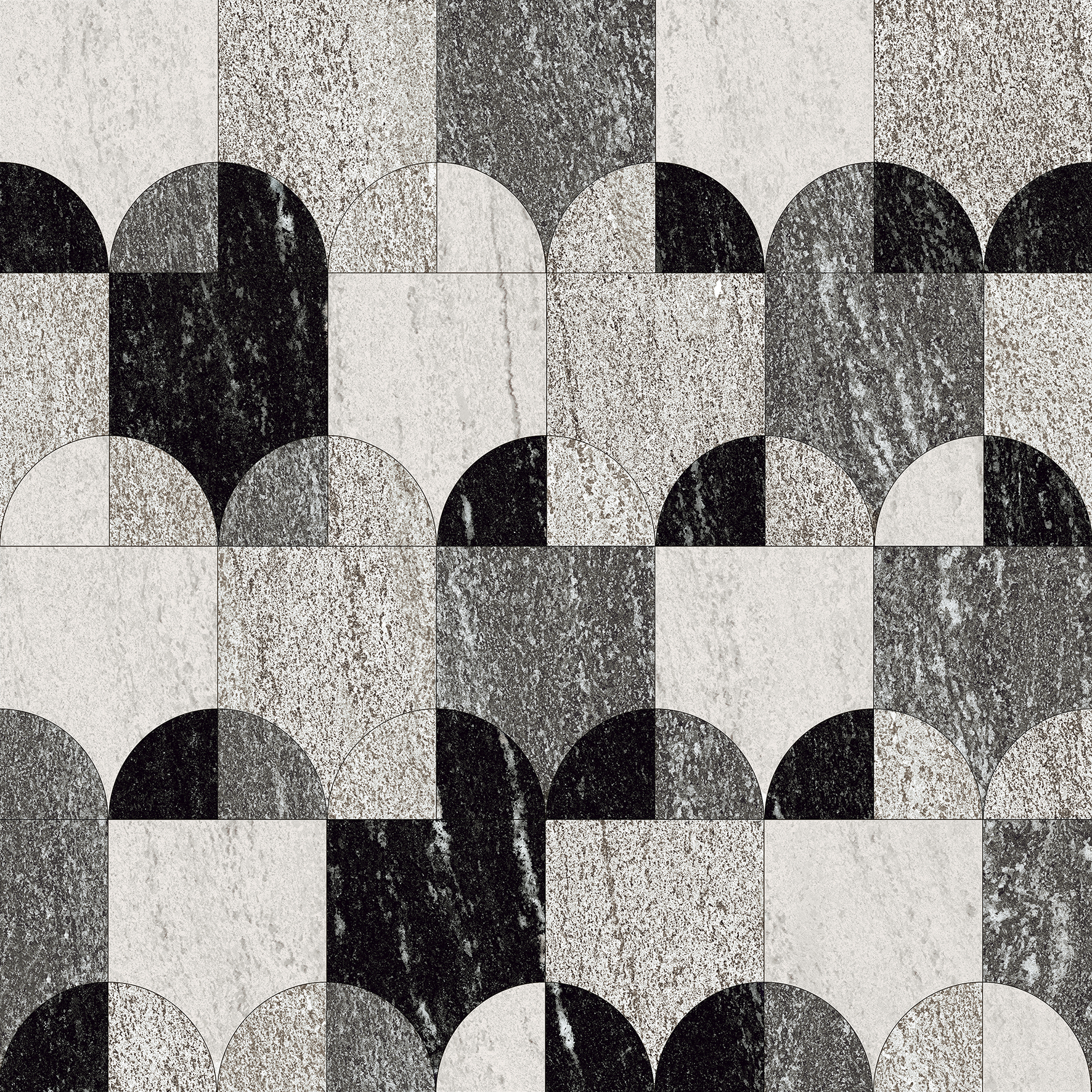 L’ispirazione parte da due graniti di origine brasiliana: il caratteristico blu dell’Azul Bahia e il nero profondo del Via Lattea, entrambi attraversati da vene bianche e costituiti da una grana medio-piccola. La trama sottile e le venature, sempre puntinate di un bianco molto leggero, che nel nero ricordano il cielo notturno, donano a questo gres porcellanato effetto pietra un’estetica uniforme ed estremamente raffinata.